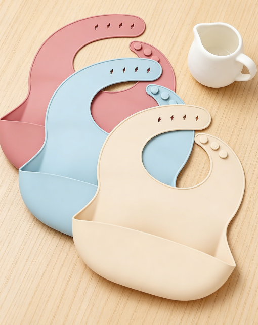 Premium 1-Pack Silicone Baby Bibs. Suitable for babies aged 6-36 months. Features adjustable neck circumference for a perfect fit as your baby grows. Made of 100% food-grade silicone, BPA-free, soft, and skin-friendly. The deep front pocket is designed to catch falling food and liquids, keeping your baby and the floor clean. Waterproof, stain-resistant, and incredibly easy to clean—just wipe with a damp cloth or rinse under water. Lightweight and foldable, making it perfect for home use or travel.